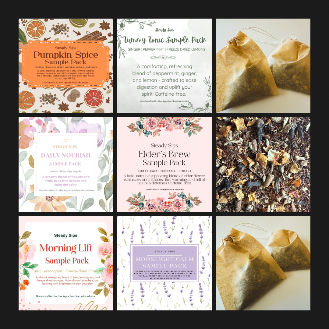 Can’t decide which tea to try first? Our Sampler Bundle gives you a taste of every handcrafted blend in our collection. Each sample pack includes enough tea for two cups, so you can experience the unique flavor and benefits of all six blends before choosing your favorites.