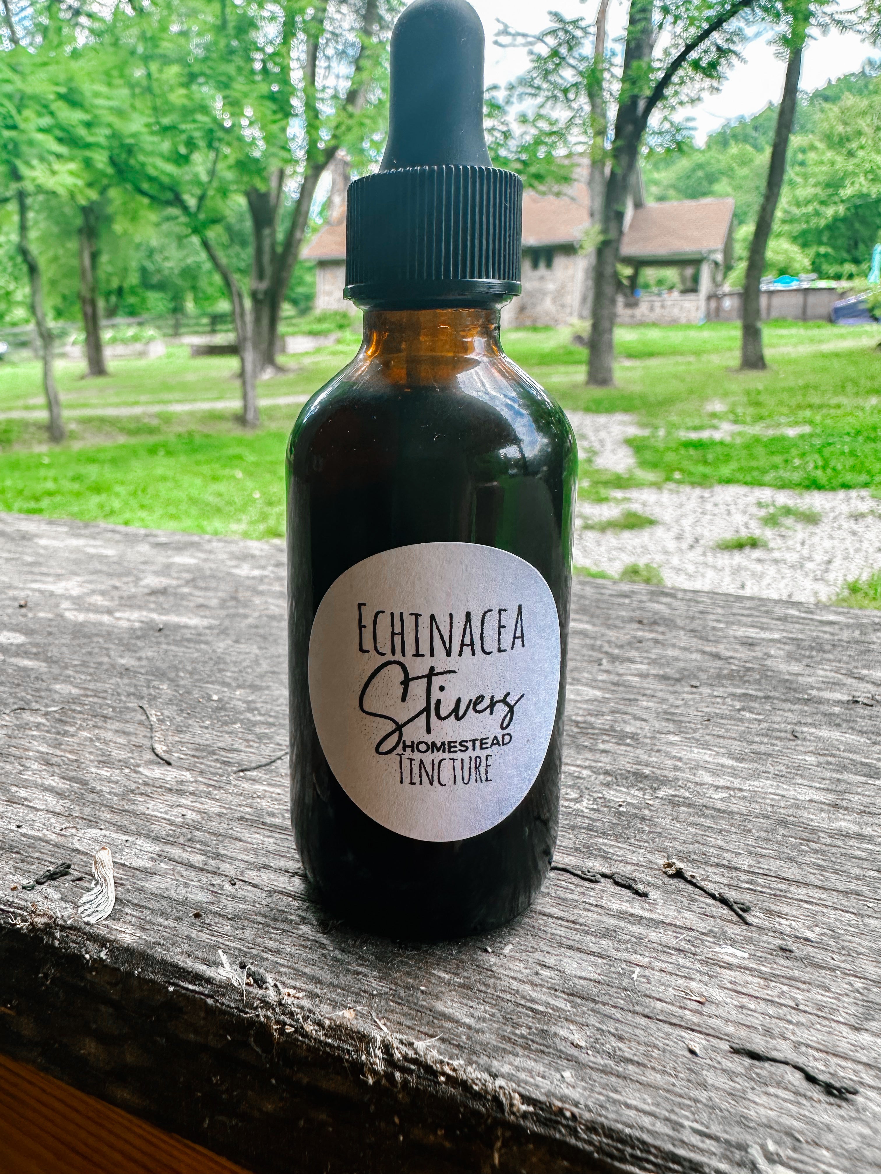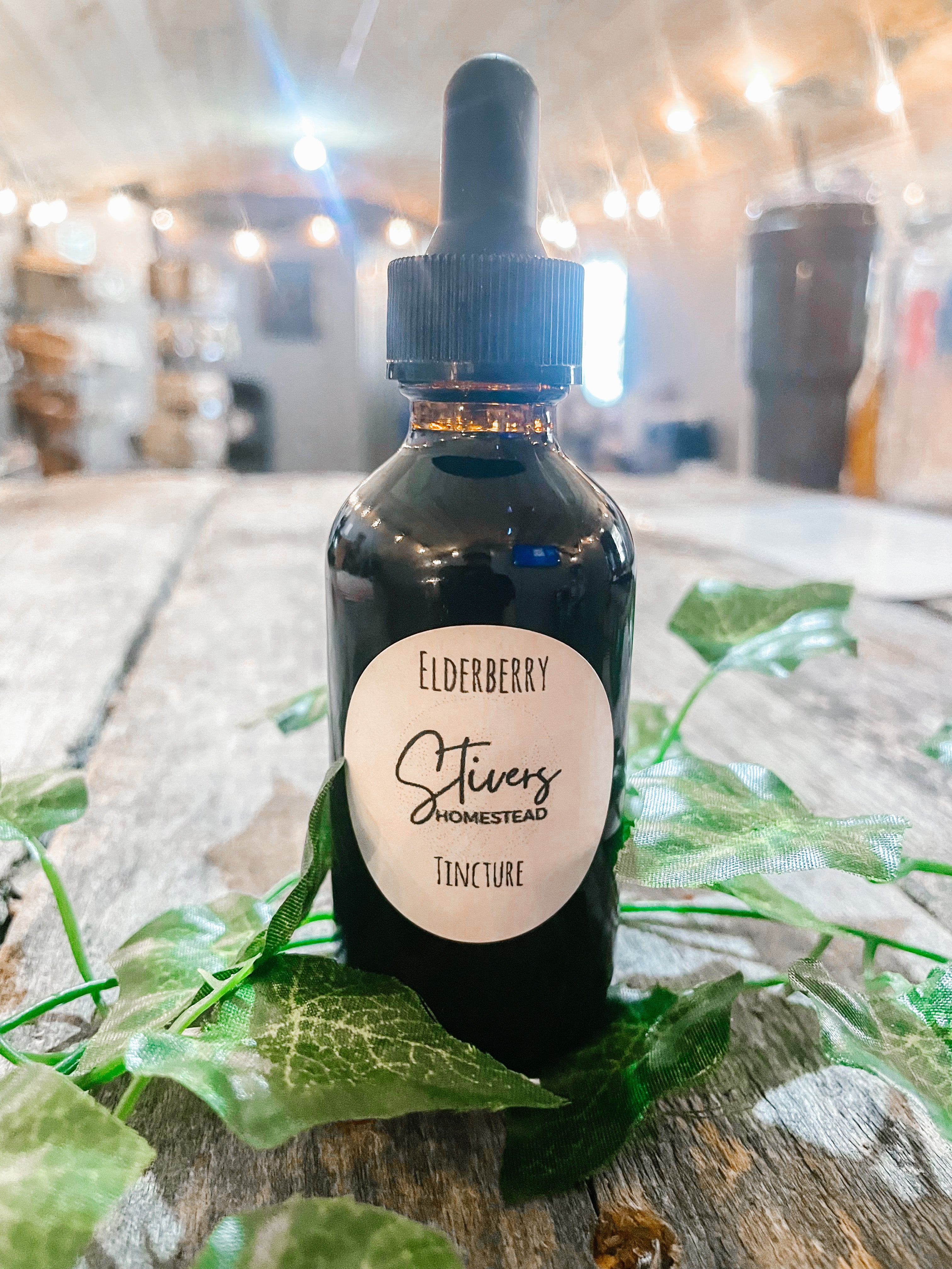We make our tinctures with 100 proof vodka. The herbs we use are homegrown, locally foraged or organically purchased. We always allow our tinctures to sit for a minimum of 6 weeks and up to 2-3 months. Tinctures have a very long shelf life.